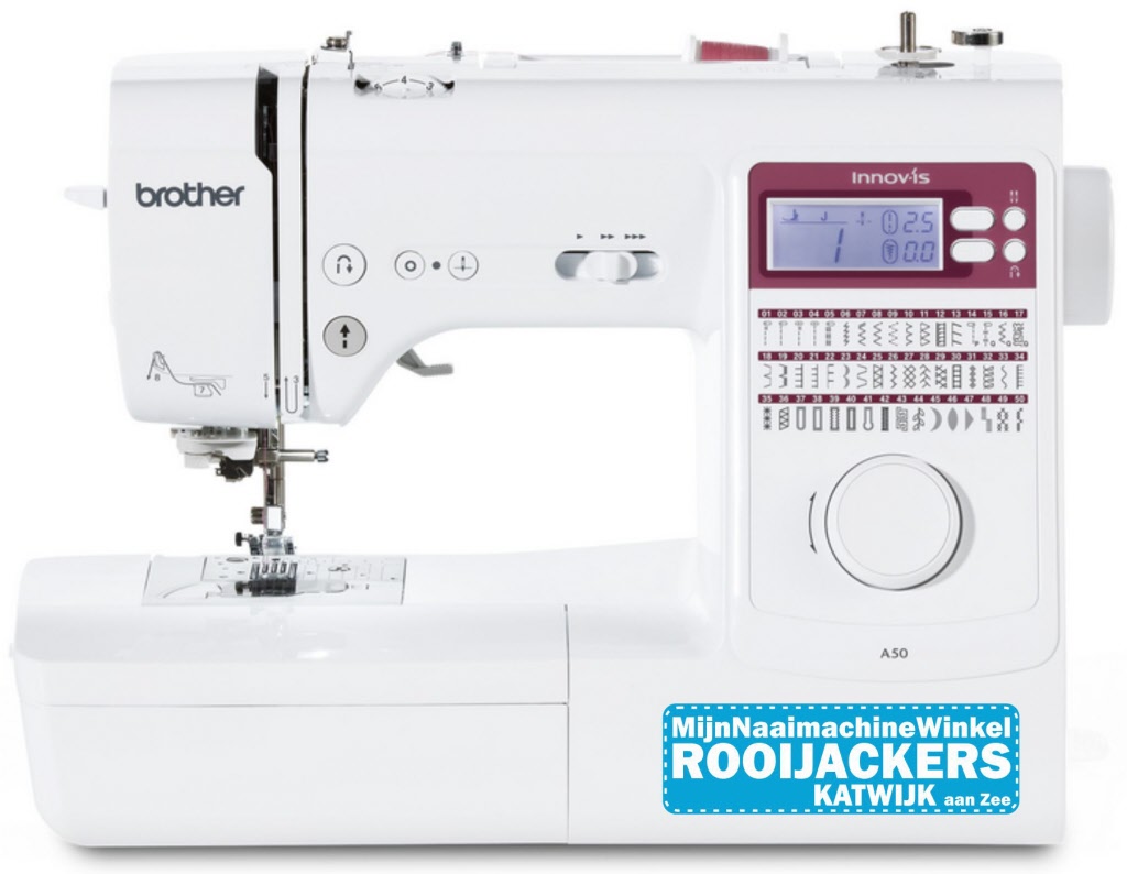 Deze handige naaimachine beschikt over veel nuttige functies waar u op een gemakkelijke manier mee aan de slag kunt. Naar verloop van tijd ontdekt u nieuwe naaimethodes waarmee u uw projecten steeds beter en sneller zult realiseren. Licht in gewicht dus gemakkelijk mee te nemen naar de naailes of workshop. Met een geavanceerd naaldinrijgsysteem om snel te kunnen starten met naaien. Met de elektronische draaiknop kiest u de steken op een snelle manier, terwijl de steek duidelijk wordt weergegeven op het LCD-scherm. Samen met de heldere LED-verlichting zorgt de Innov-is A50 ervoor dat u altijd perfect ziet wat u doet.